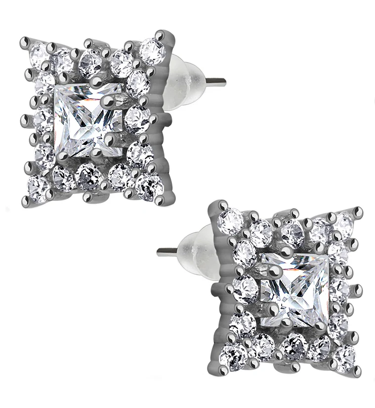 Square CZ Cluster Sterling Silver Earrings