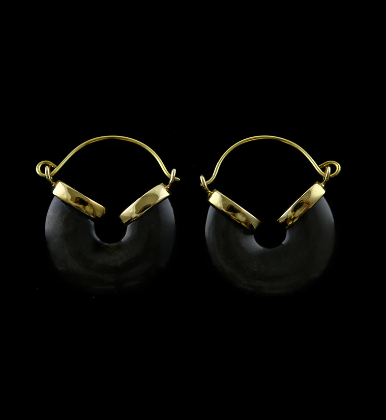 20G Golden Obsidian Halo Hangers - Earrings