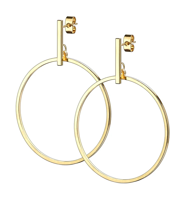 Gold PVD Disk Hanging Earrings