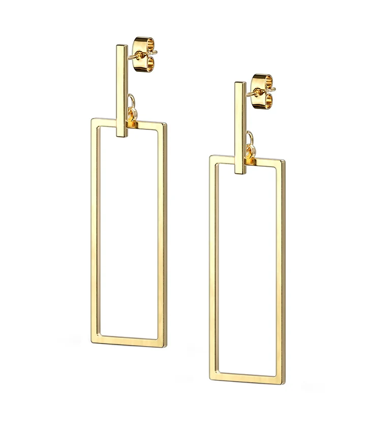 Gold PVD Rectangle Hanging Earrings