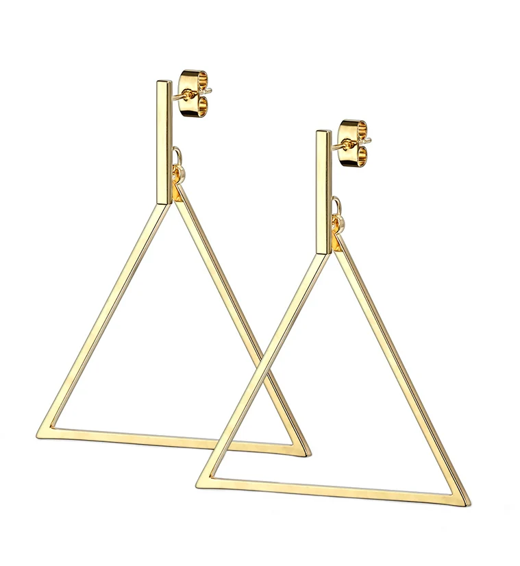 Gold PVD Triangle Hanging Earrings