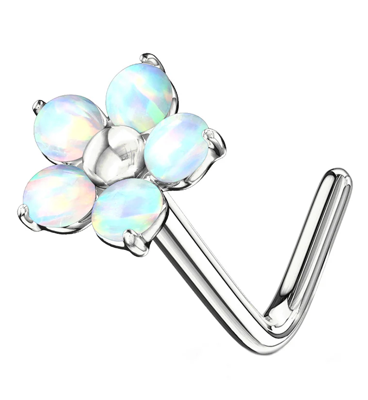 20G White Opalite Flower L Bend Nose Ring