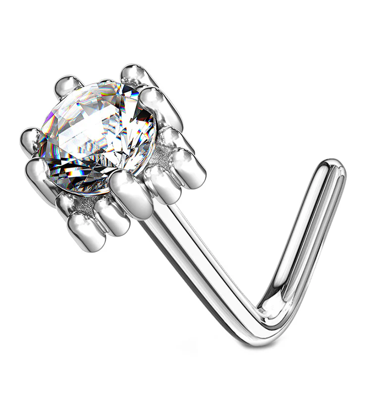 14kt White Gold Crate Clear CZ L Bend Nose Ring