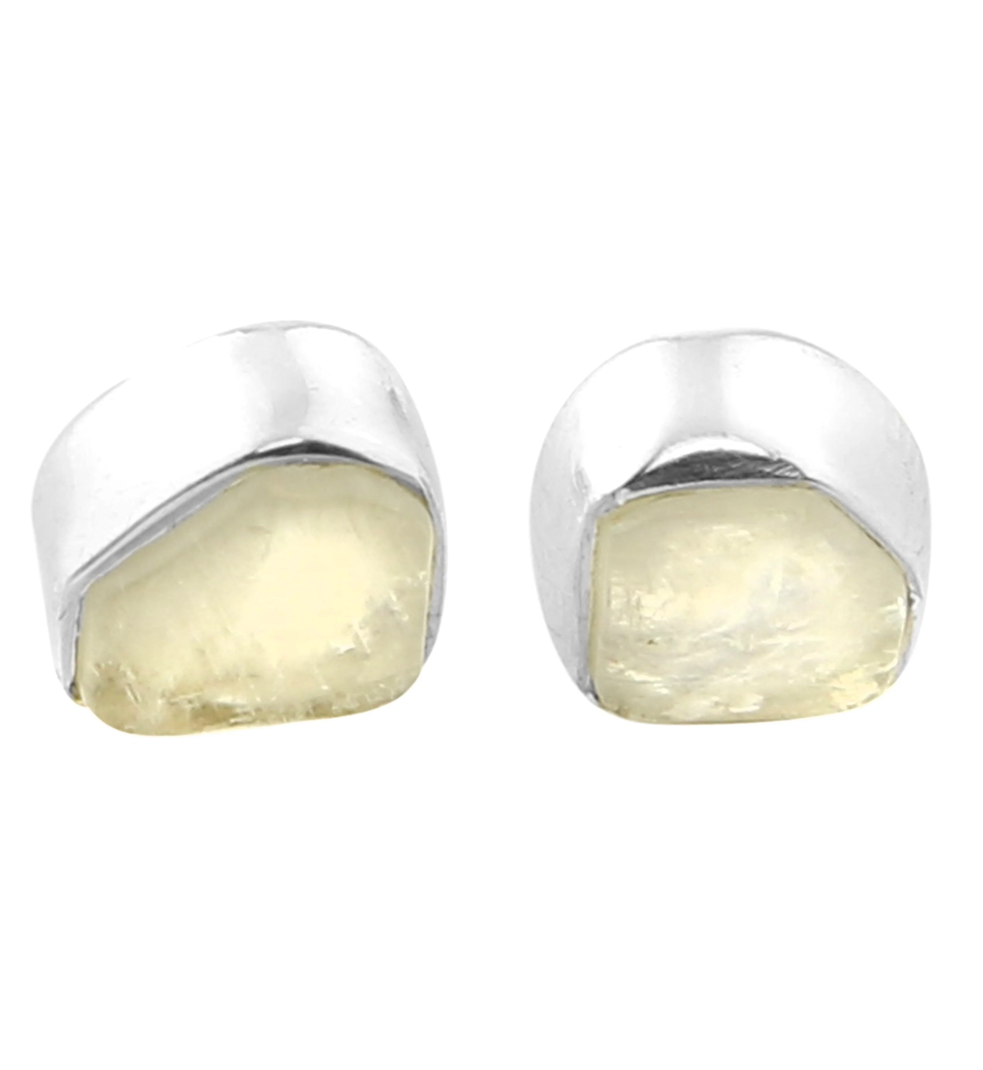 Rainbow Moonstone Bezel Set Sterling Silver Earrings