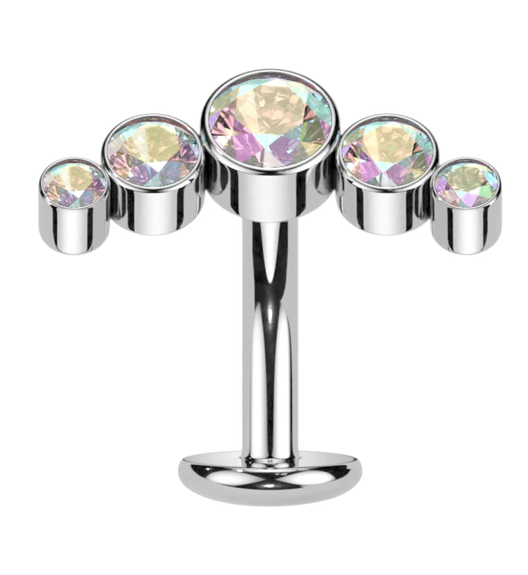 Crest Rainbow Aurora CZ Titanium Threadless Floating Belly Button Ring (Convex Disk)