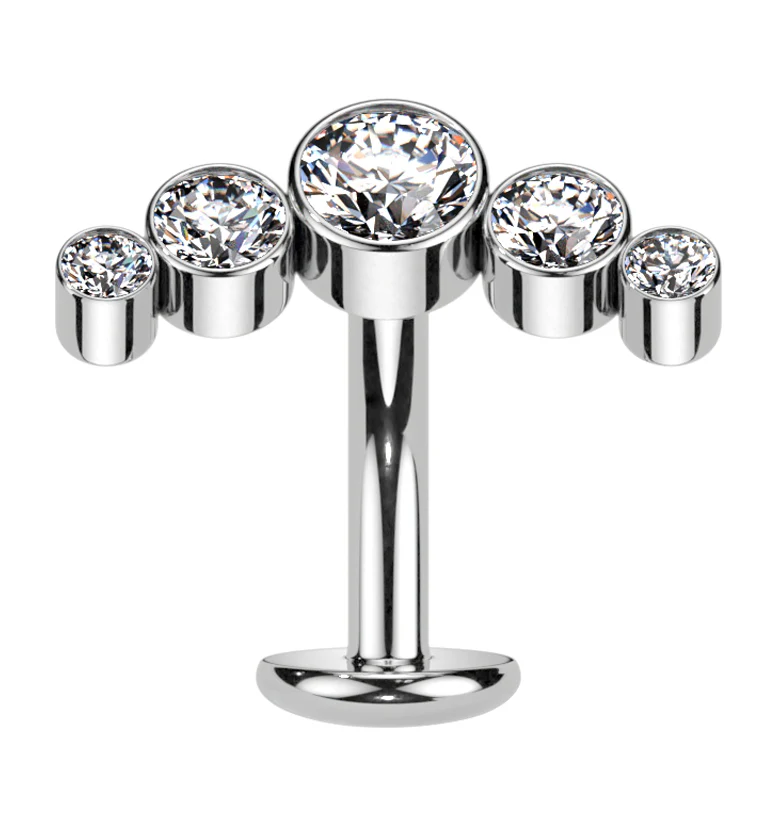 Crescent Dual Clear CZ Threadless Titanium Top