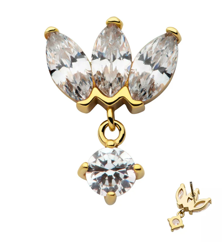 14kt Gold Triangle CZ Triple Dangle Threadless Top