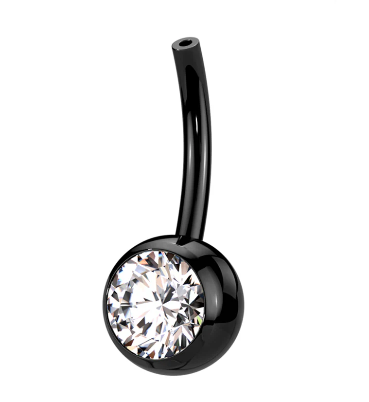 Black PVD Bezel Clear CZ Titanium Threadless Belly Button Ring Base