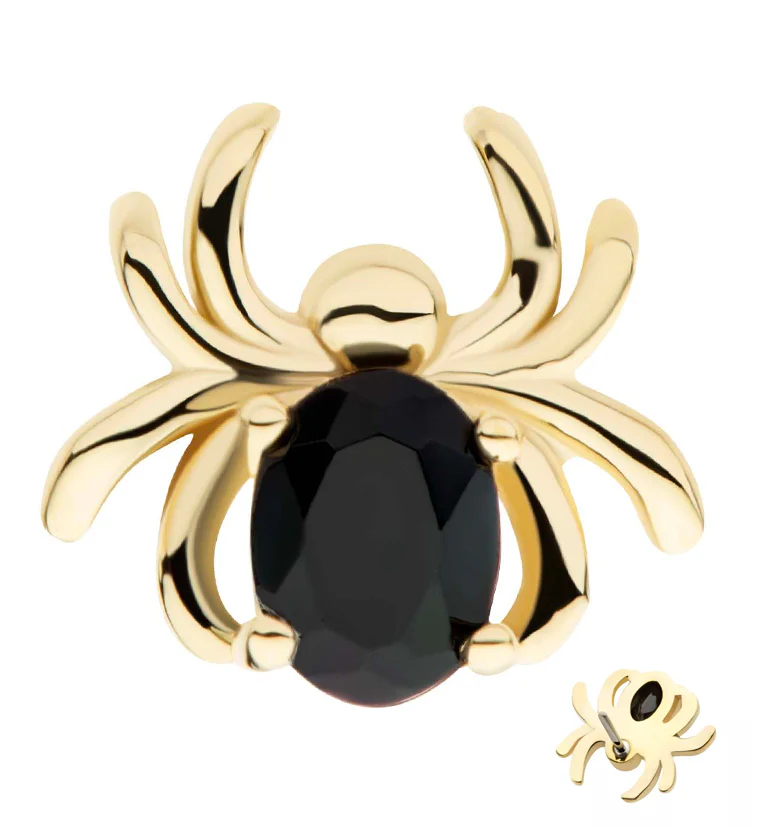 14kt Gold Spider Oval Black CZ Threadless Top