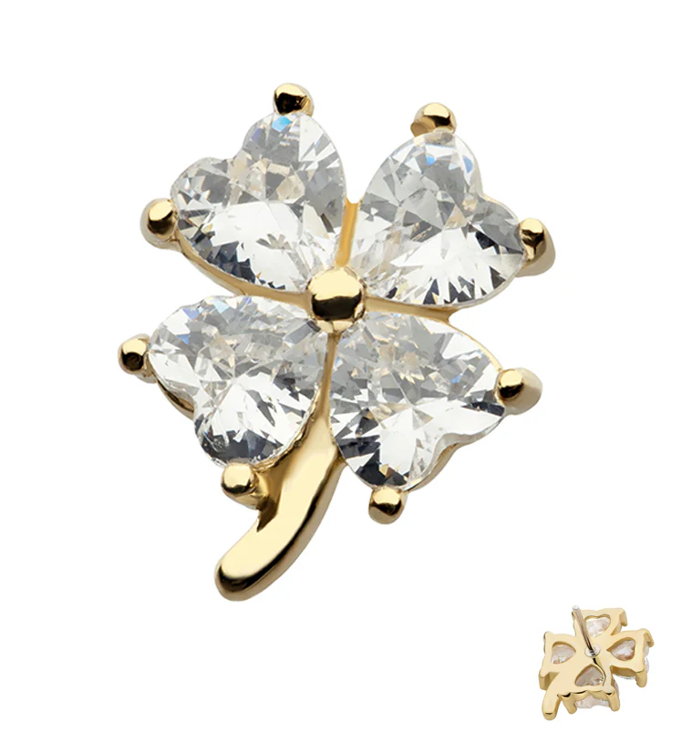 14kt Gold Four Leaf Clover Clear CZ Threadless Top
