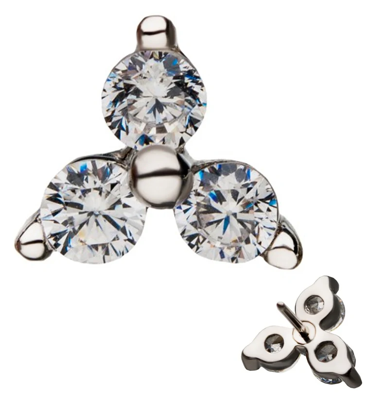 14kt White Gold Triple CZ Prong Set Threadless Top