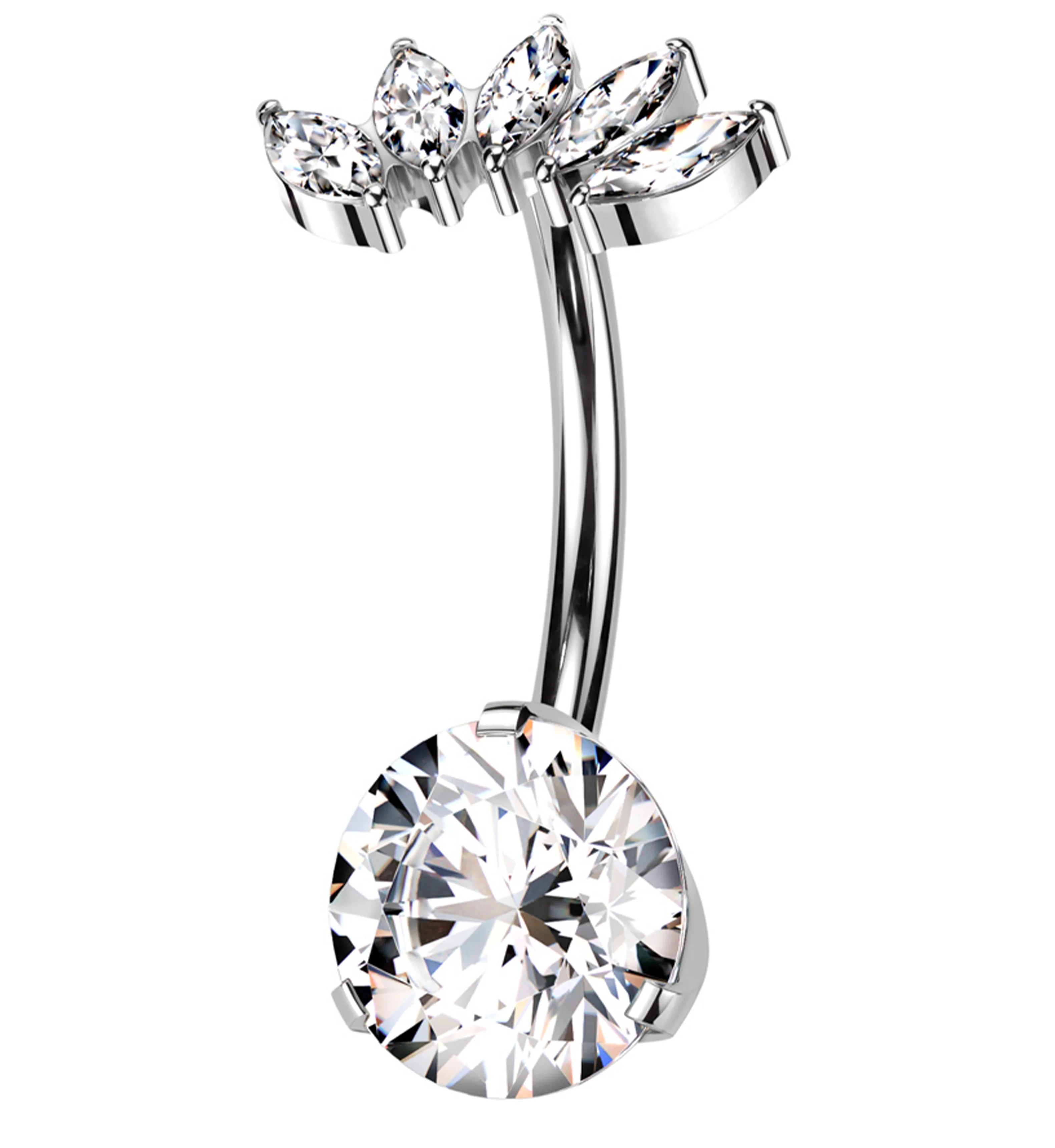 Half Crown Clear CZ Titanium Threadless Belly Button Ring