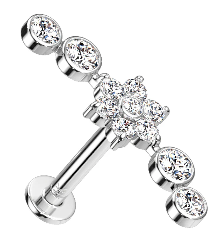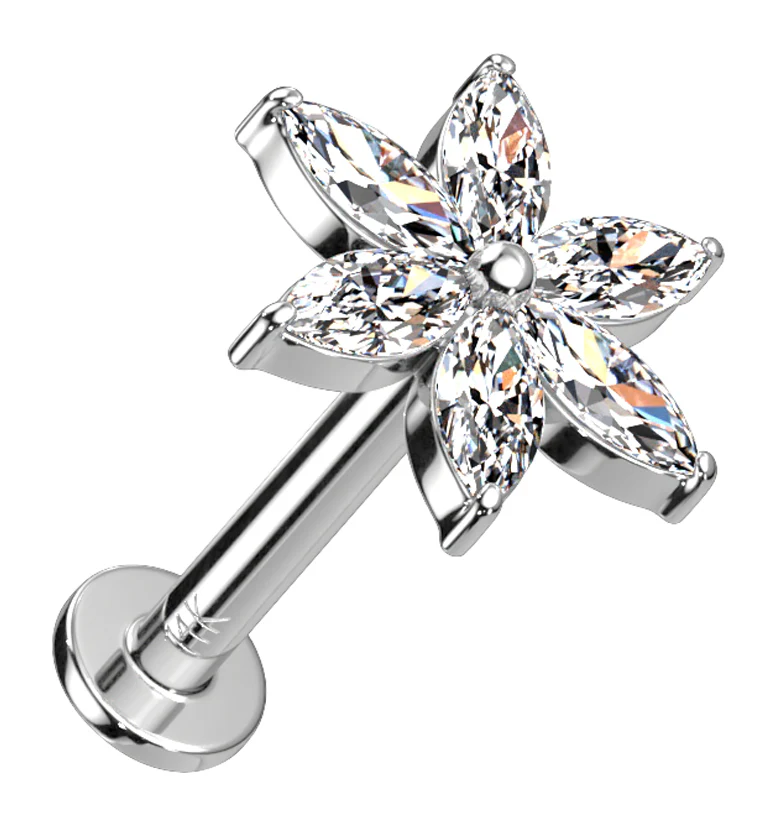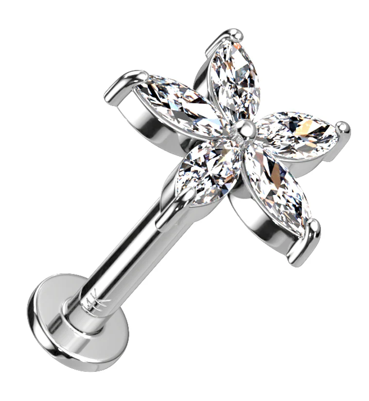 14kt White Gold Starflower CZ Threadless Labret