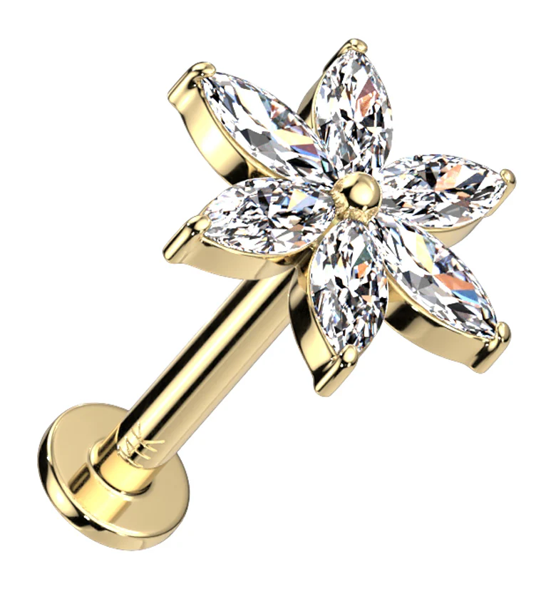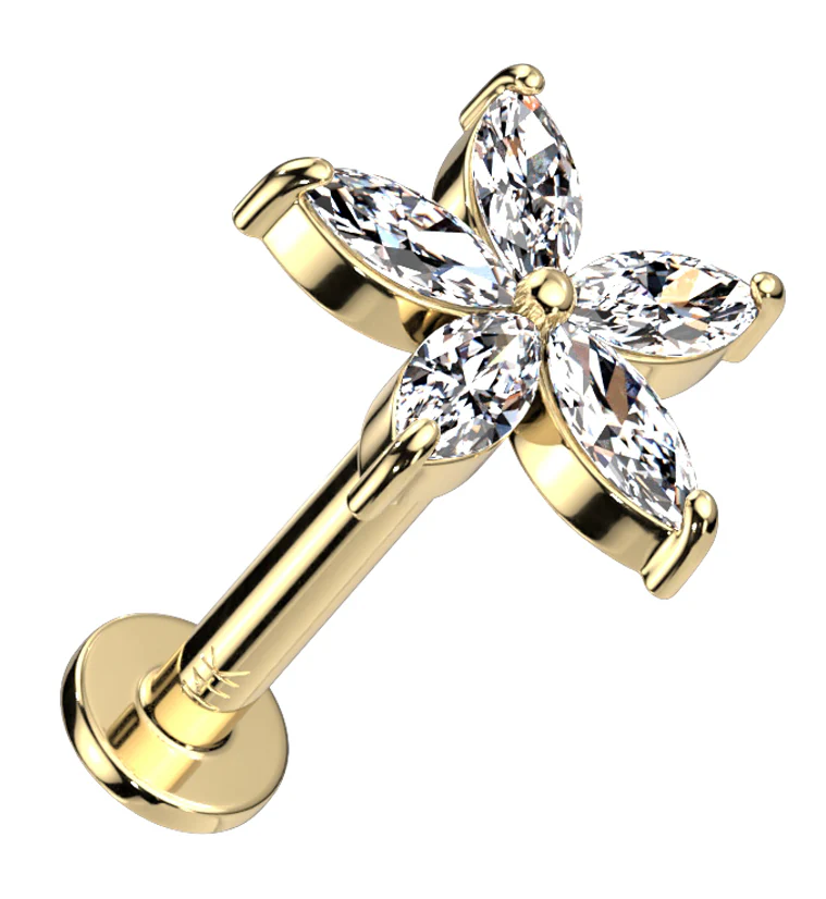 14kt Gold Starflower CZ Threadless Labret