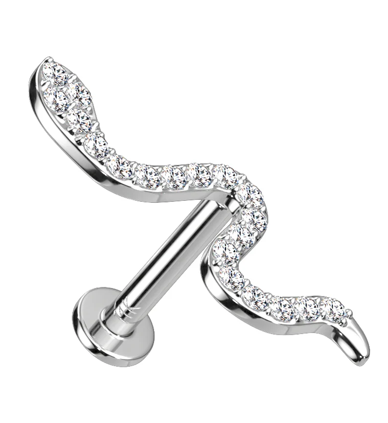 14kt White Gold Snake CZ Threadless Labret