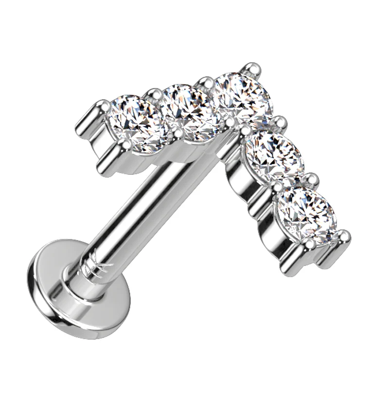 14kt White Gold Curve CZ Threadless Labret