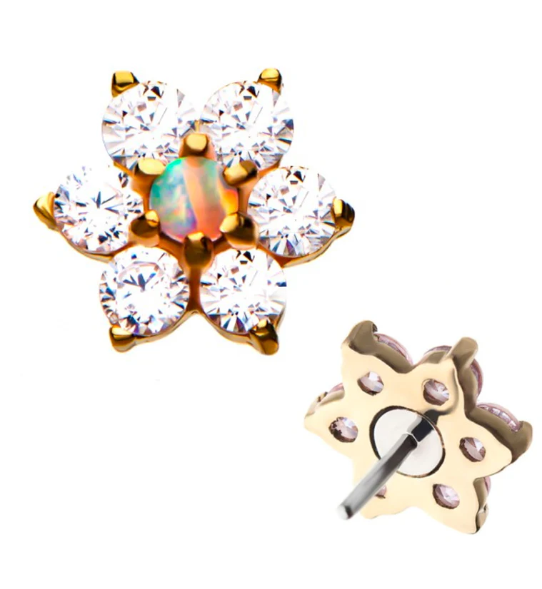 Opal & CZ 14kt Gold Flower Threadless Top