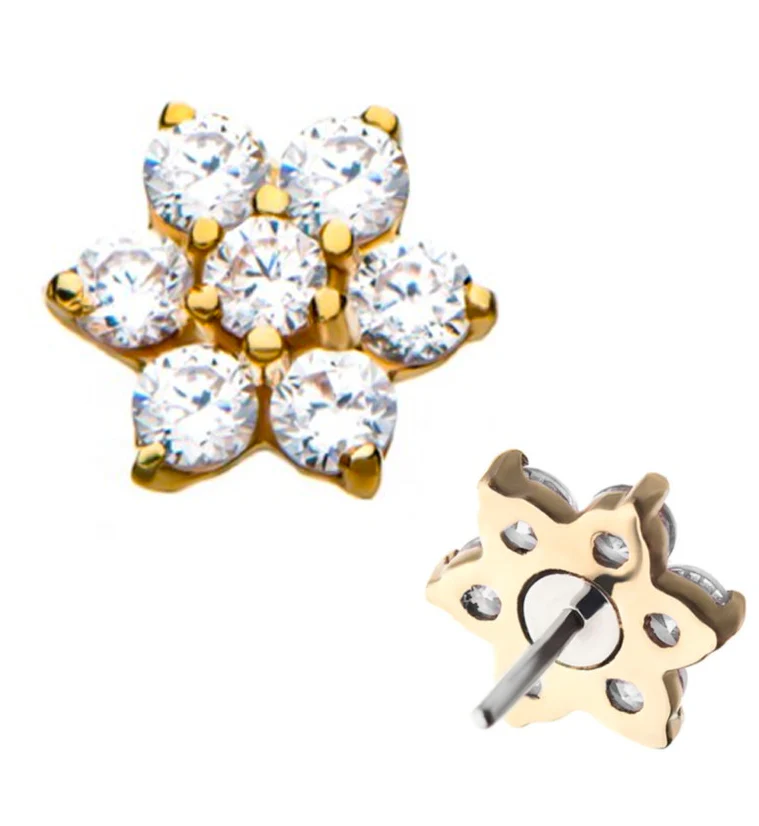 Clear CZ 14kt Gold Flower Threadless Top