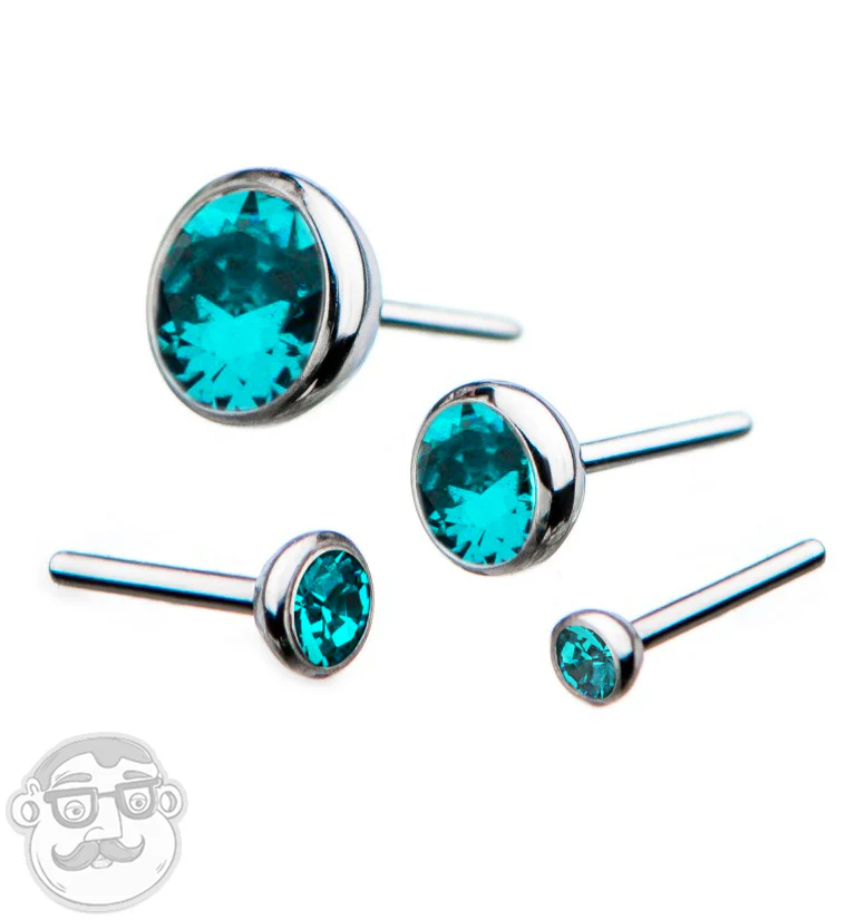Titanium Threadless Top with Blue Zircon Gem