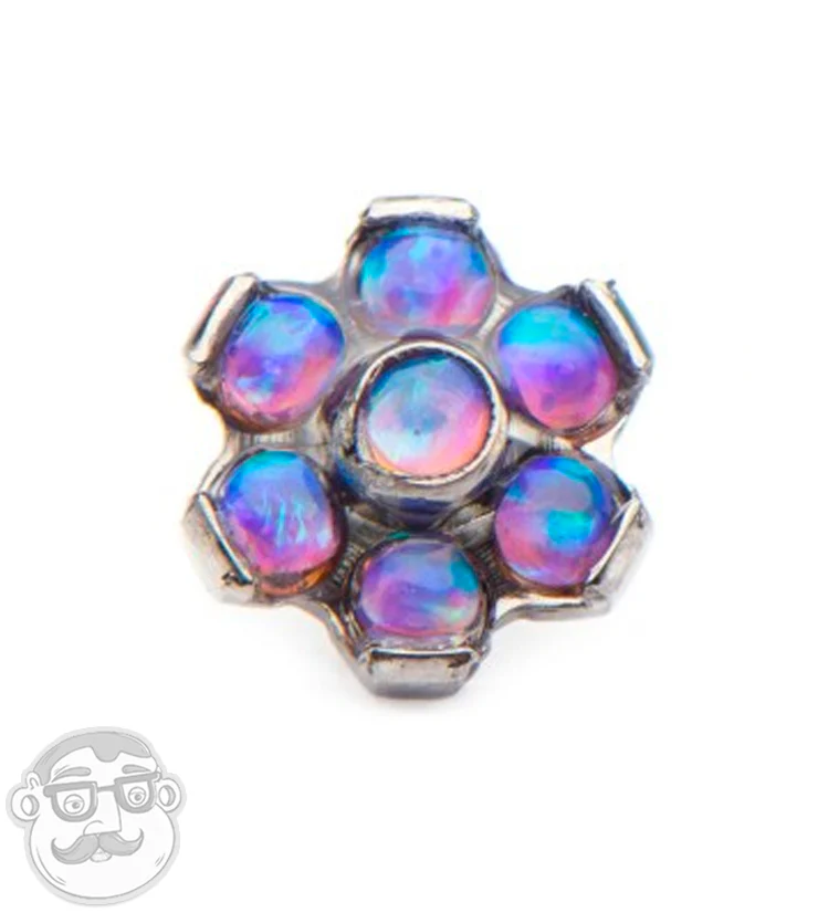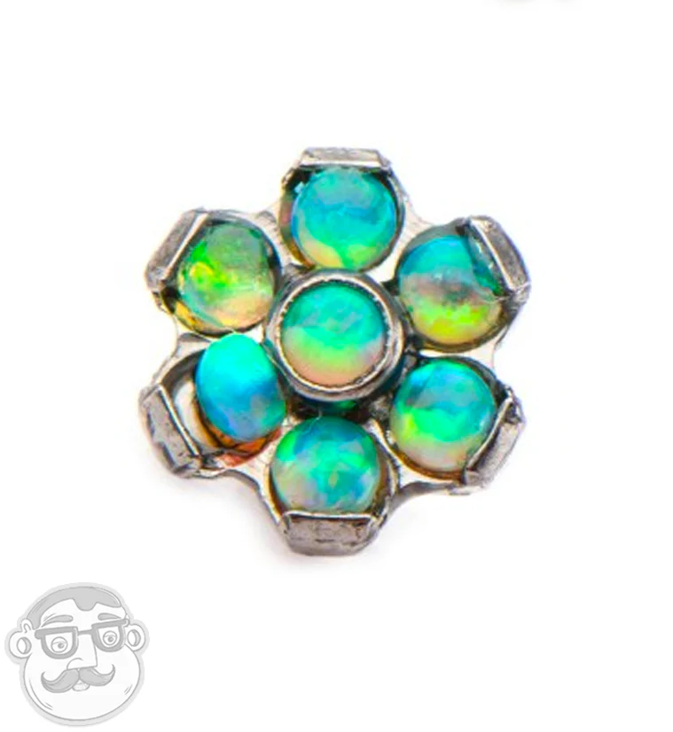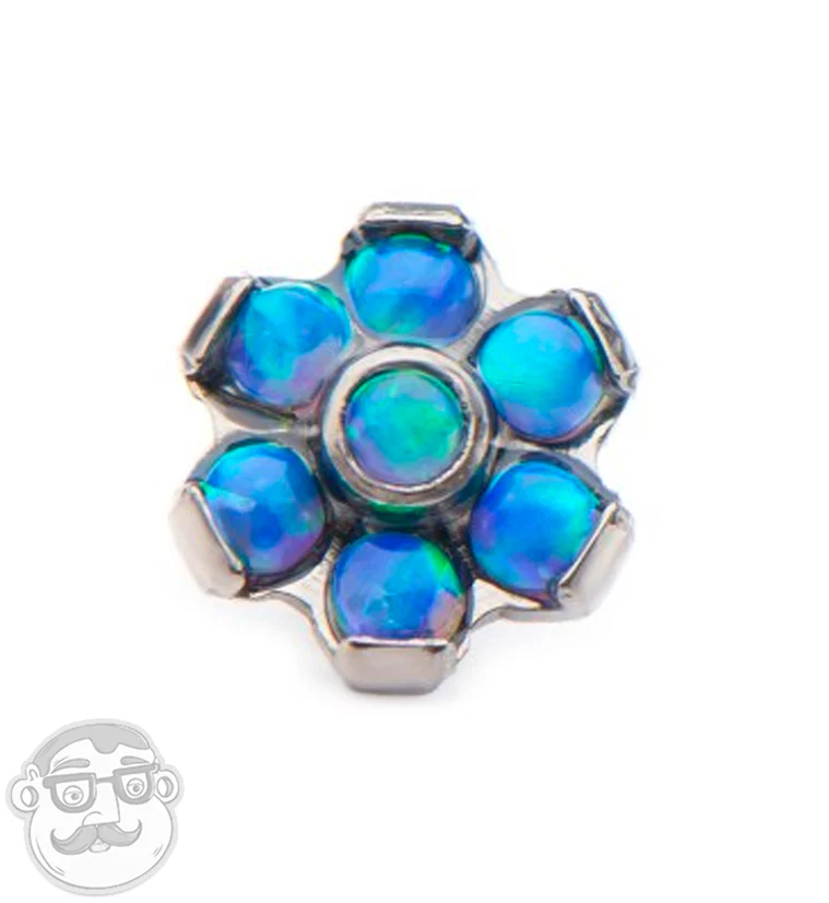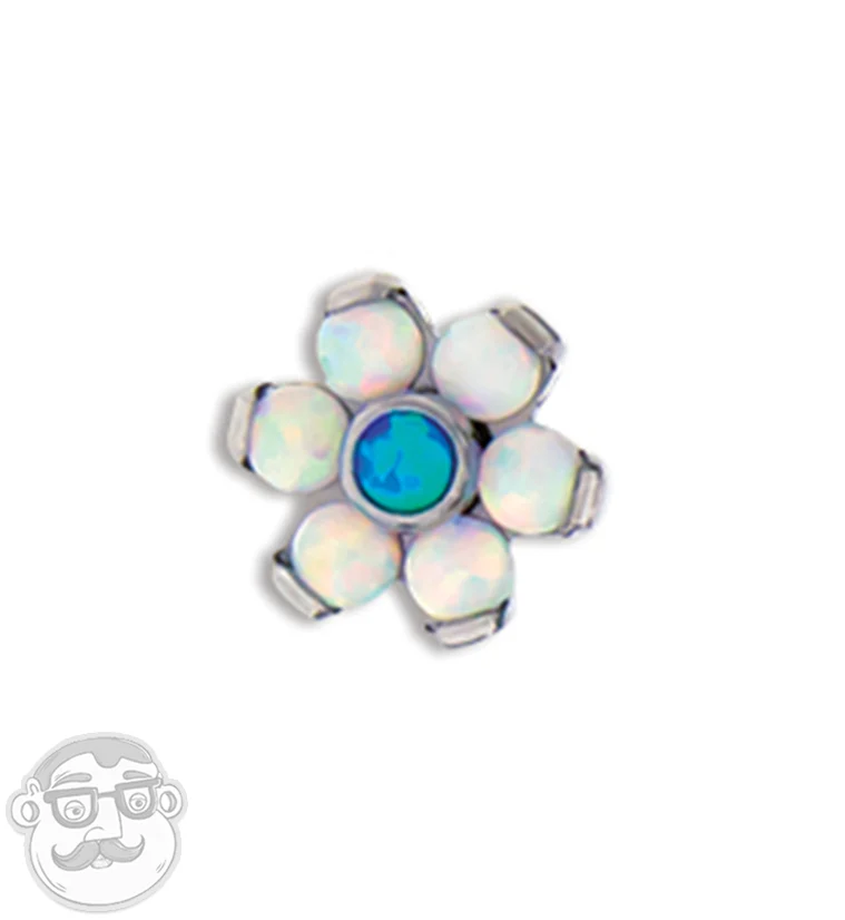 16G White & Blue Opal Flower Titanium Bezel End