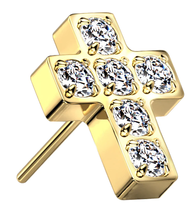 Gold PVD Cross CZ Titanium Threadless Top