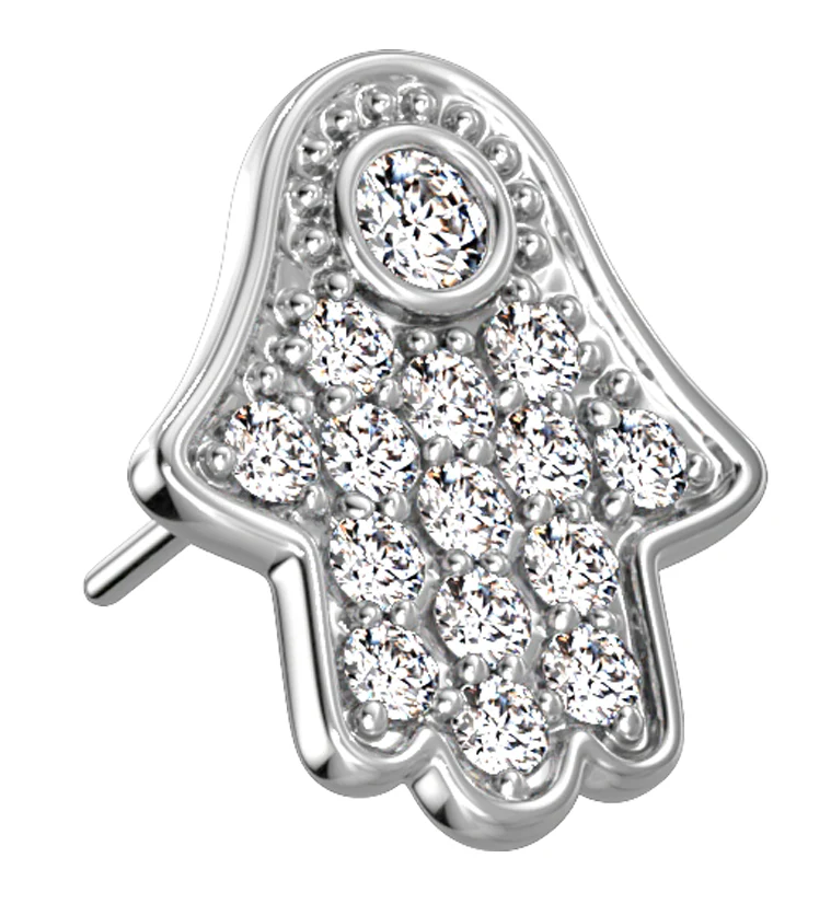 14kt White Gold Hamsa Hand CZ Threadless Top