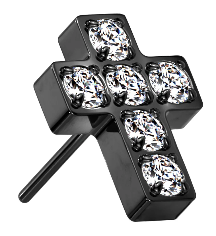 Black PVD Cross CZ Titanium Threadless Top