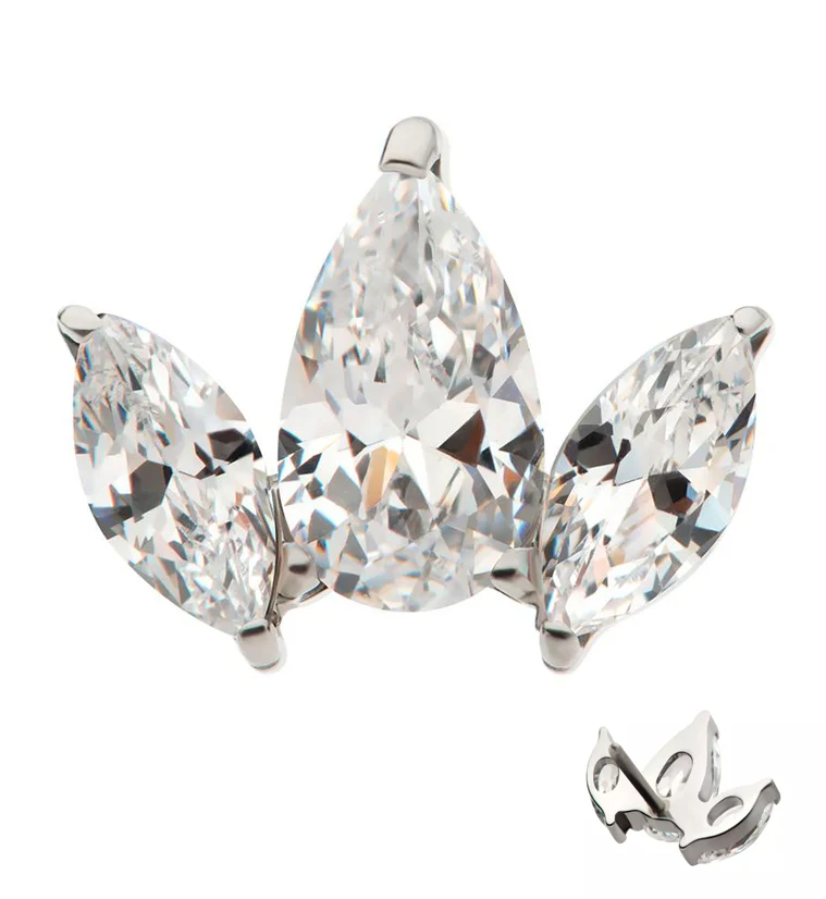 Triple Petal Clear CZ Threadless Titanium Top