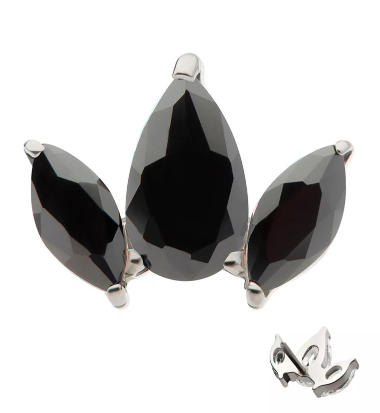 Triple Empress Teardrop Black CZ Threadless Titanium Top