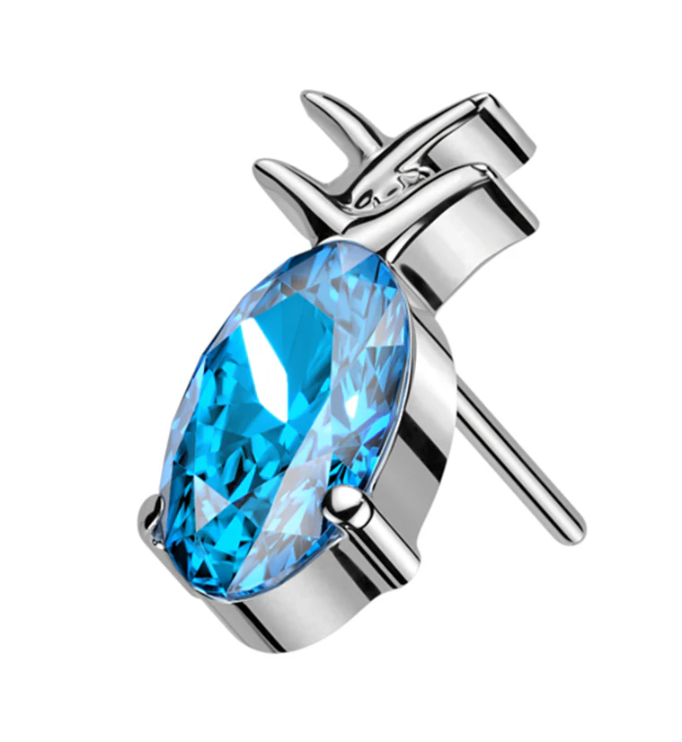 Pineapple Aqua CZ Threadless Titanium Top