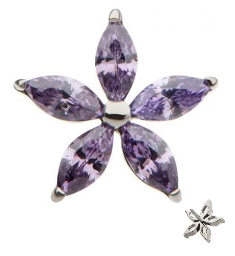 Marquise Flower Amethyst CZ Titanium Threadless Top