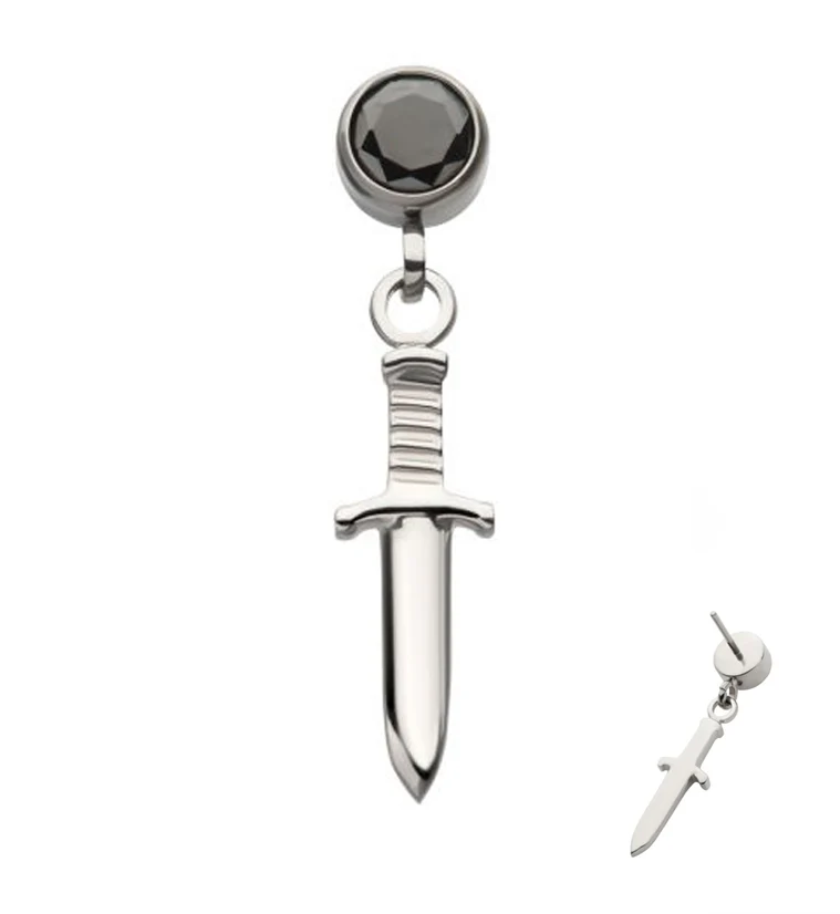 Dangle Dagger Black CZ Internally Threaded Top