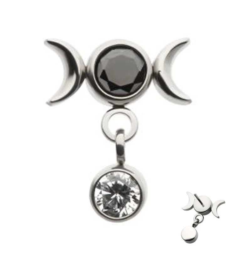Black CZ Moon Phase Dangle CZ Threadless Top