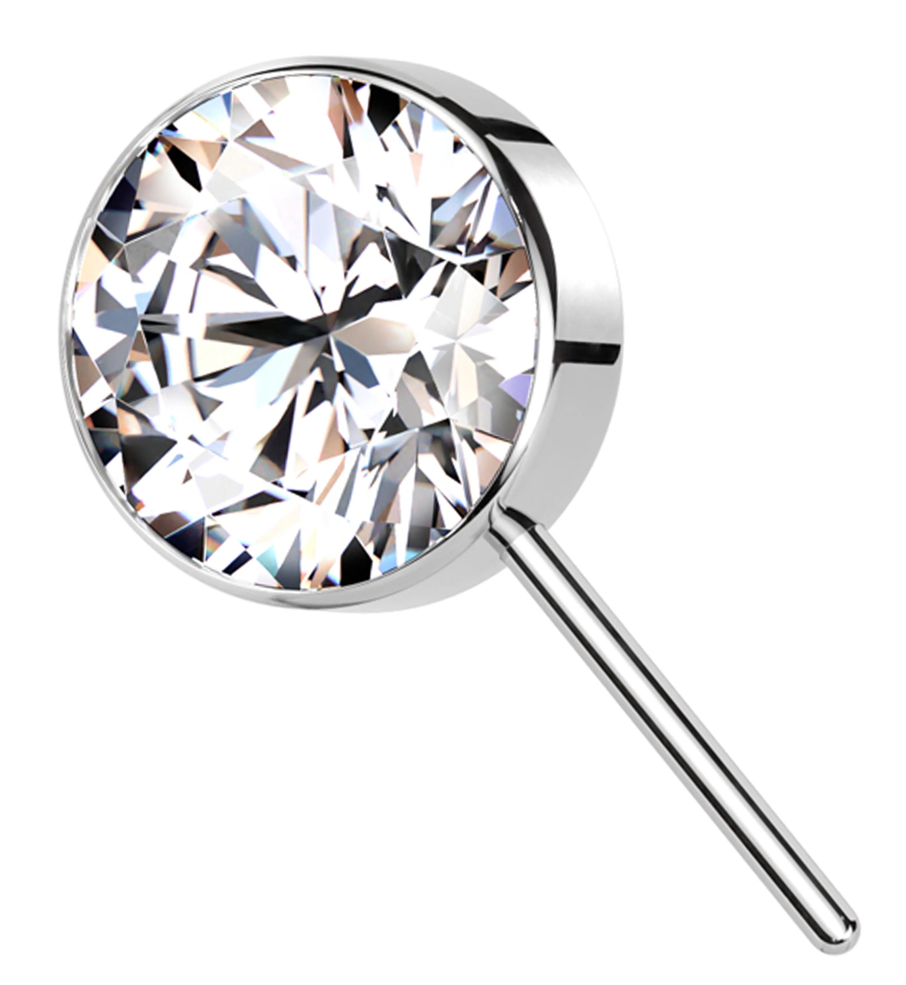 Forward Facing Bezel Rainbow Aurora CZ Titanium Threadless Top