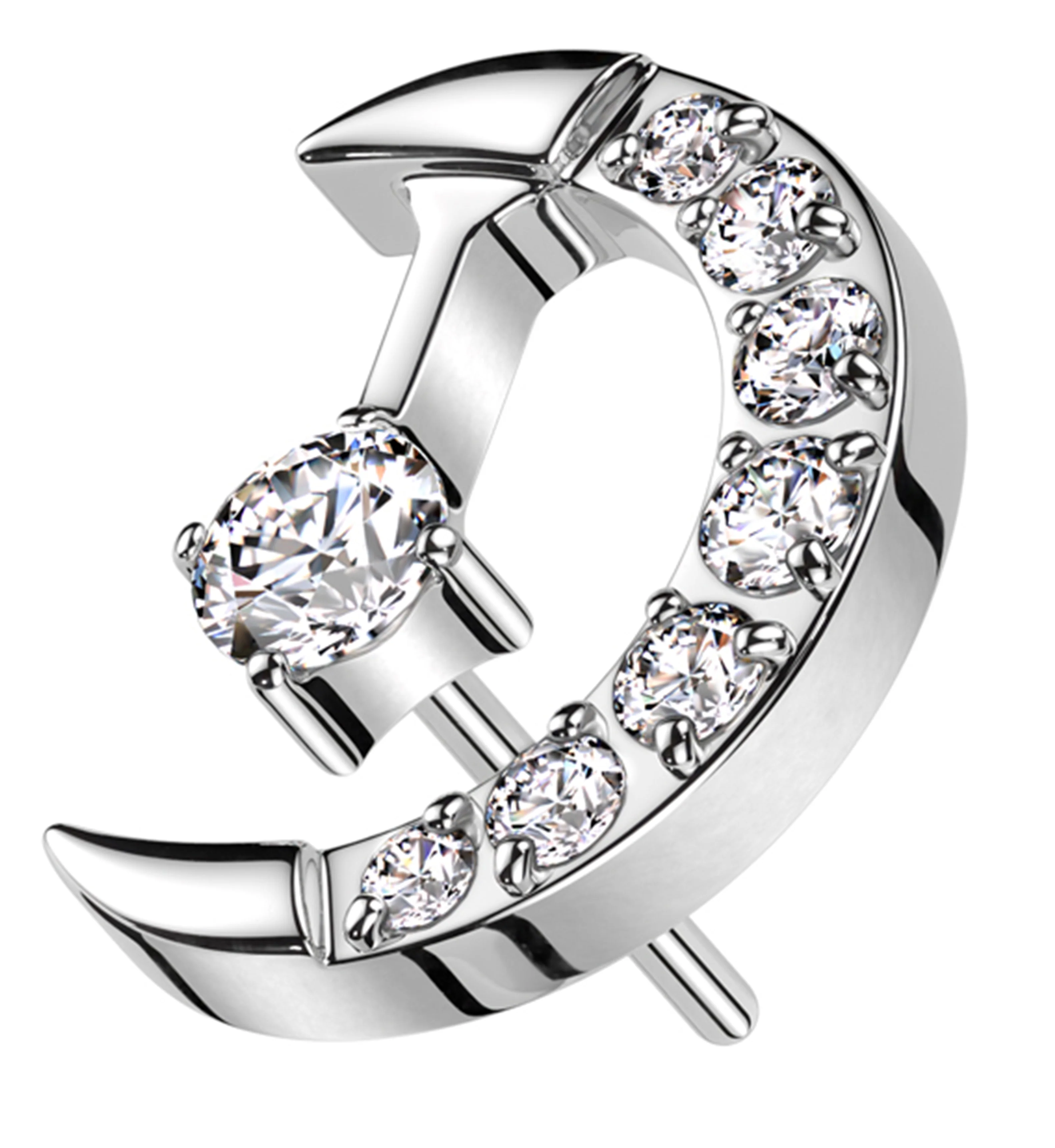 Crescent Moon Clear CZ Drop Titanium Threadless Top