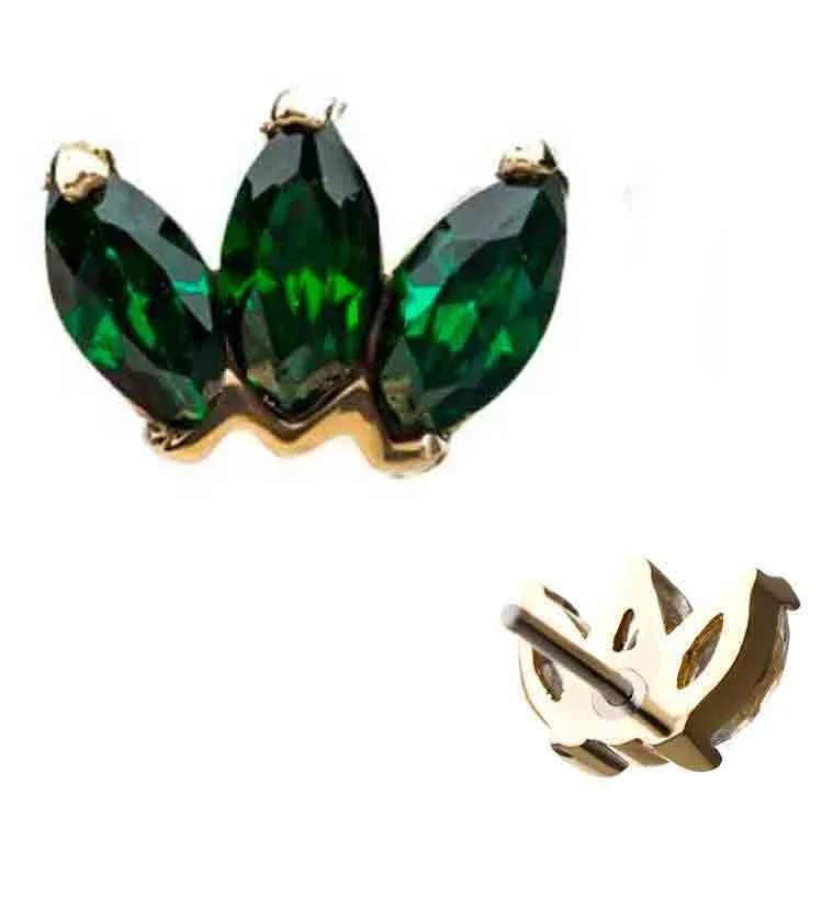 14kt Gold Green CZ Lotus Threadless Top