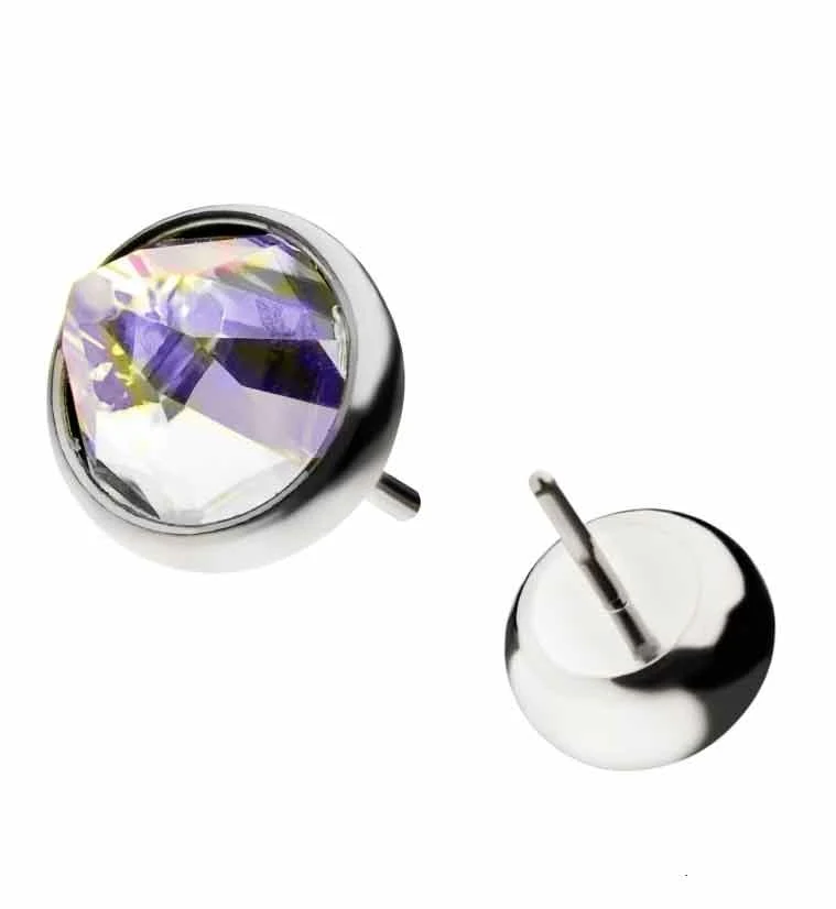 Titanium Threadless Rainbow Aurora Swarovski Pyramid Top
